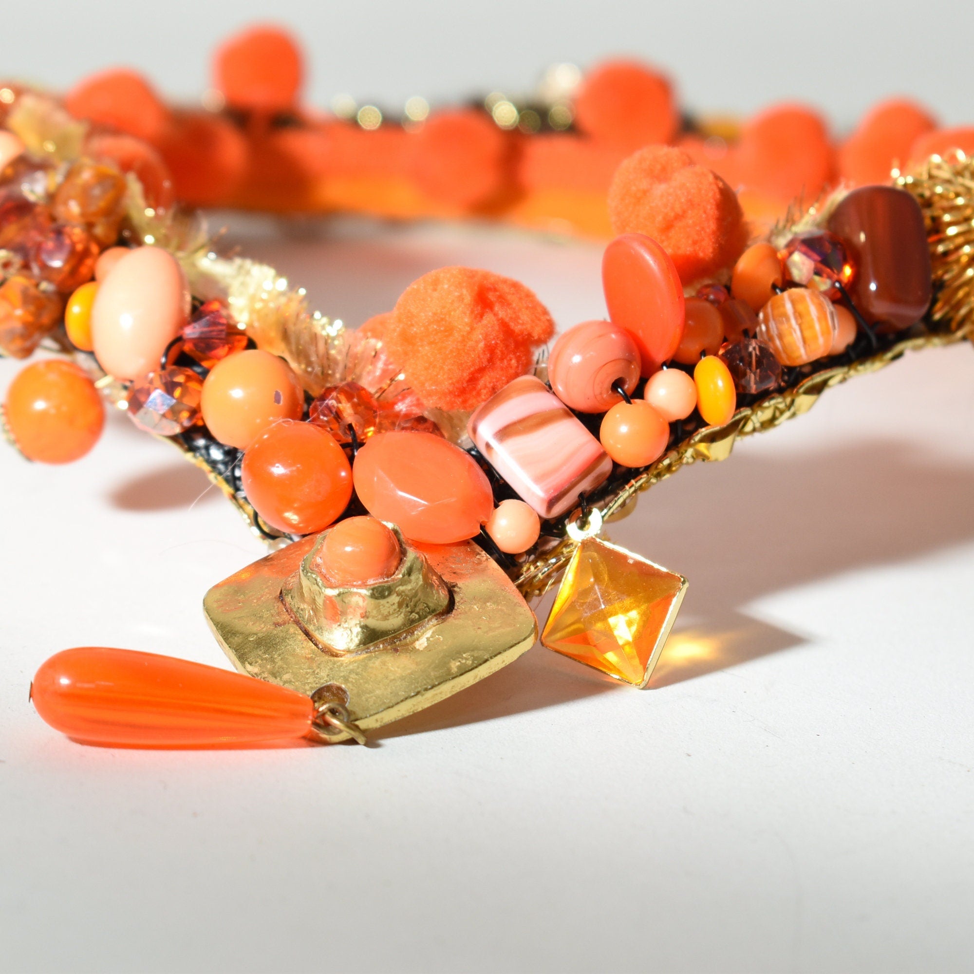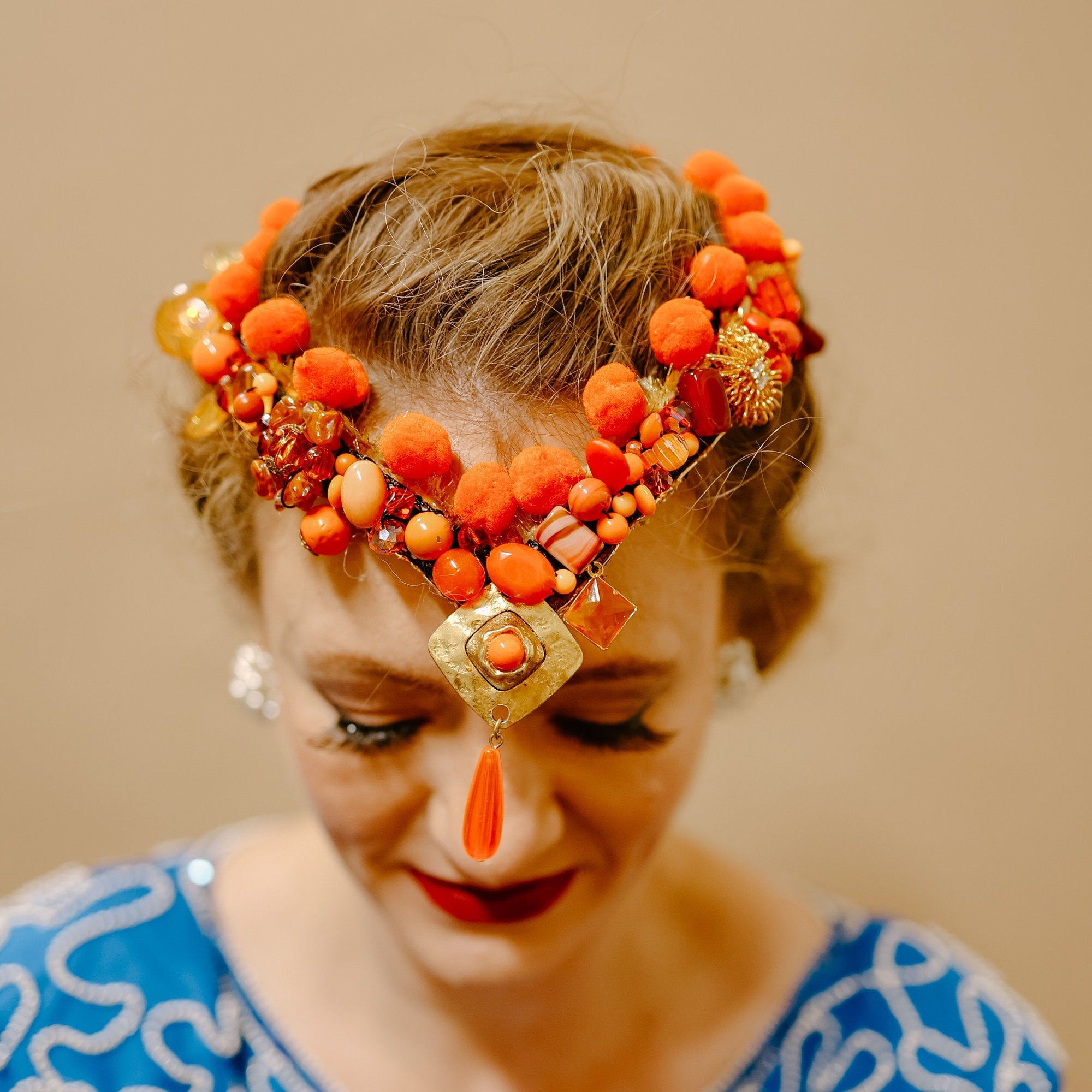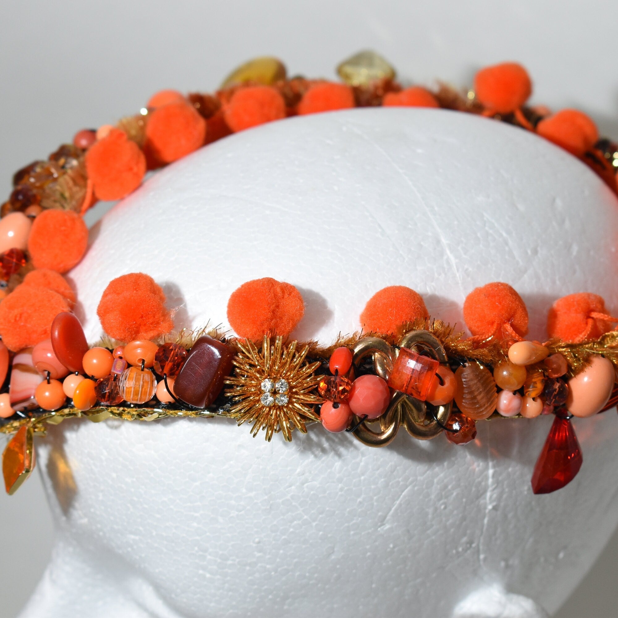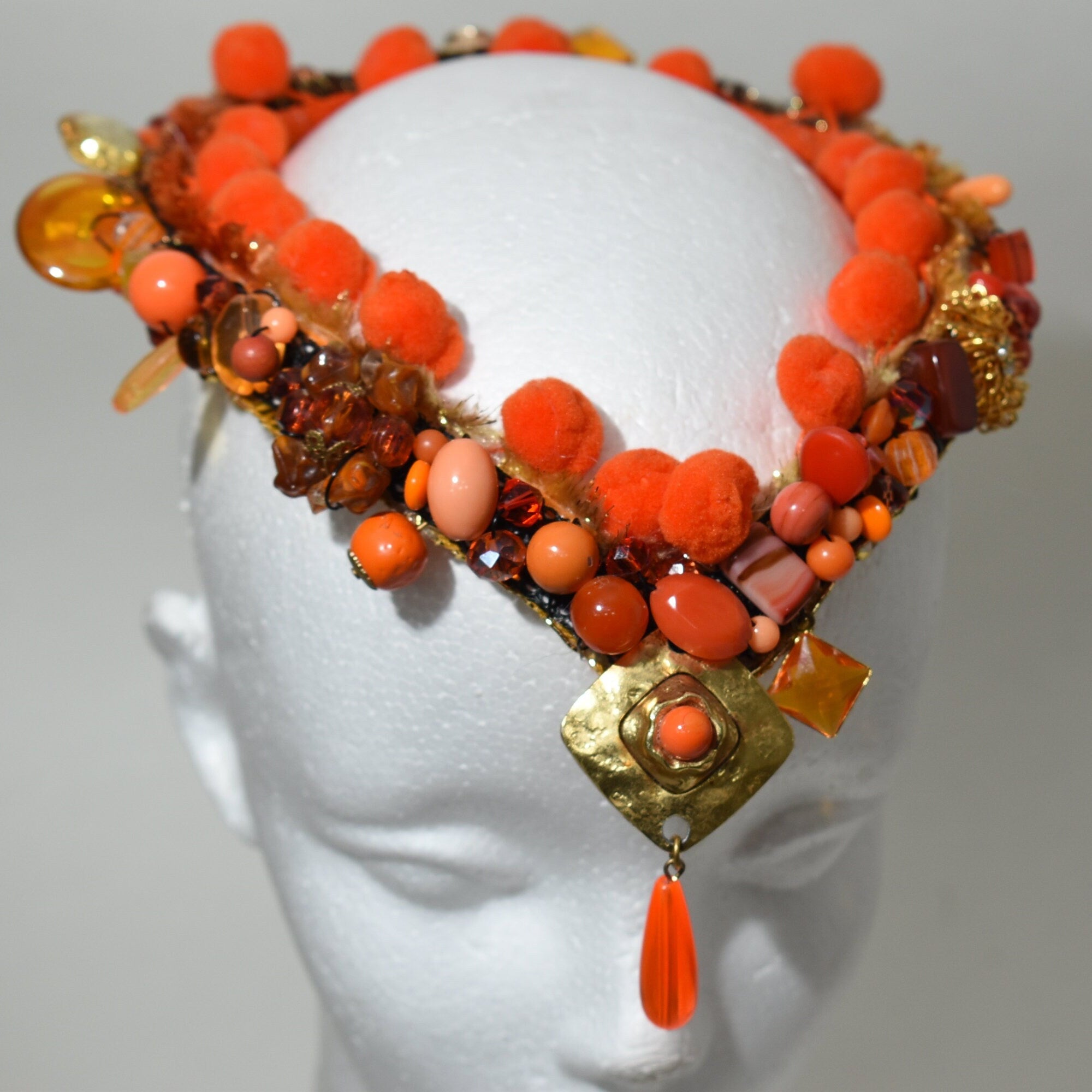 Make a statement with this amazing reimagined vintage orange crown. This piece will fit an adult size head and is stunning on. You will receive the orange crown in the pictures.